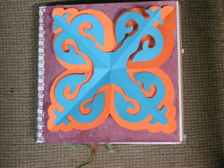 Here is a cut out I made of the planned design. This may be a bit tough to cut out in felt. I didn’t glue this in my notebook yet as I thought the colors were a bit much. I made add a bit of paint to make them more like the colors used in the photos above.