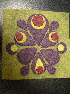 This is the geometric stacked applique I showed you yesterday. It’s all stitched now. I can see that the placement was a bit off on some of the pieces but it will have to do.
