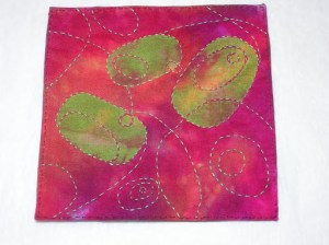Here’s the back of my shadow applique. I fused the edges of the silk organza to the back and then stitched them down.
