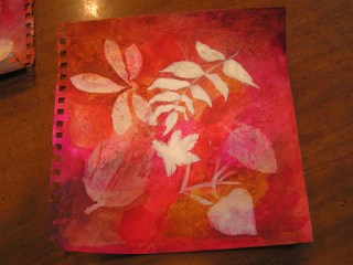 Here’s one page. I sketched in a couple of leaf shapes and then painted them with gesso.