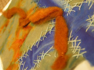 And a closer view. The felt has been couched down in a few places. You can see it still is elevated from the surface quite a bit.