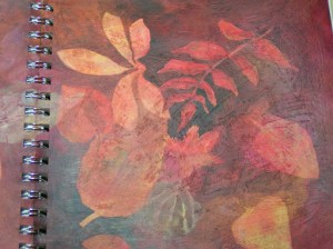 I did a final layer on my leaf painting. I’m sure I could add more but I think it’s enough at this point. I will be doing another one anyway and since this is just going into my studio journal, I decided to stop.