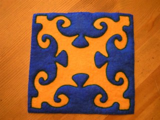 So it is complete. I used the same green yarn that I used for the blue and red applique.