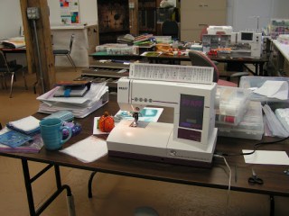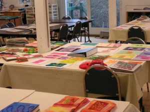 Here is all our stuff laid out on the tables. There were four of use showing and we filled up 6 large table areas. This shows Lynette’s work in the front and mine in the back.