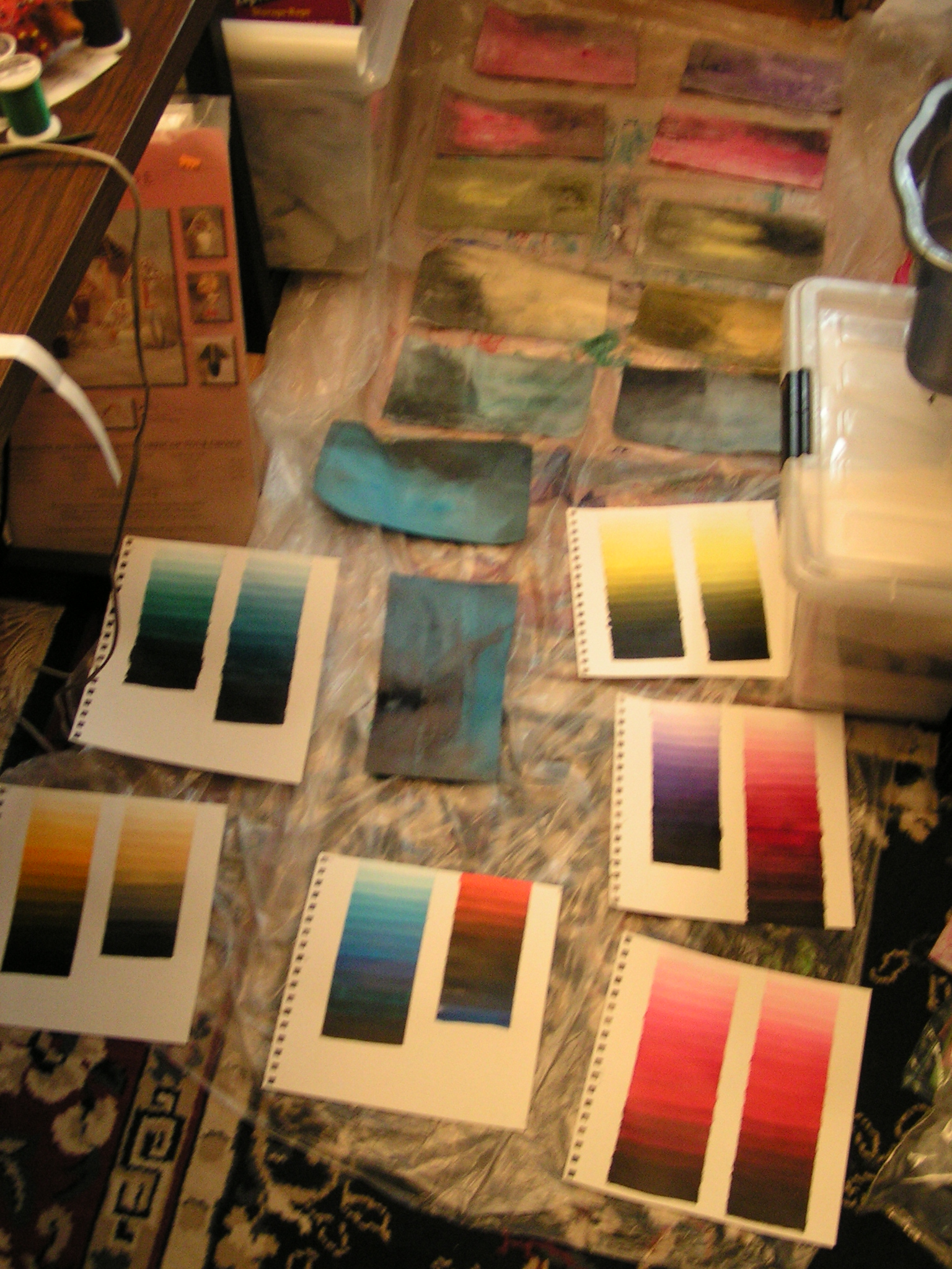 I am still working on my homework from my Color class with Gail Harker. I finished the small notebook of color schemes and painted more scales.