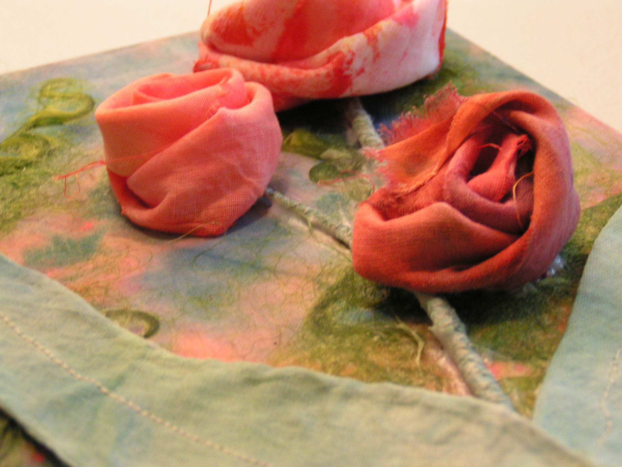 I love it! Especially the roses. What a great use of the painted silk. The Wensleydale was a great addition for texture! Do you sleep Ruth? I guess this was a walk in the park compared to the yurt, π I can’t wait to see more pieces.
