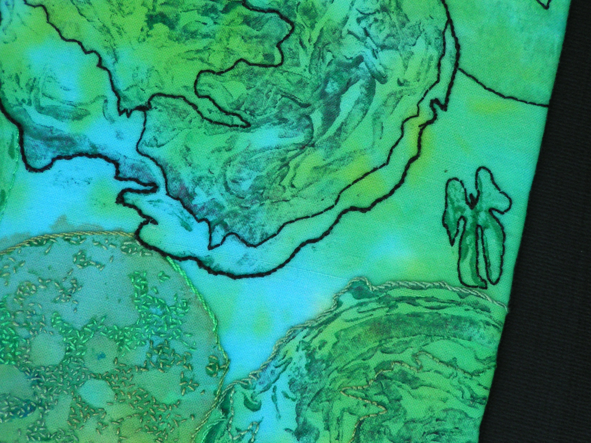 Here’s a sneak peak of the stitching that I did today. I will blog about the entire piece on The Felting and Fiber Studio on Halloween. Hope it won’t be too scary for you 🙂