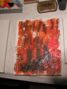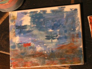I seemed to have missed a post last week. I had company, it snowed two feet and somehow I forgot all about posting. But hopefully, I will get back on to a regular schedule soon. Today we had our surface design meeting and we worked on mixed media paintings.