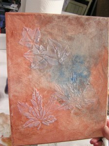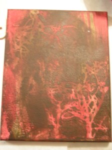 She had the table all set up for us with three canvases to work on. It was easiest to work on multiple canvases so that there was drying time for some of the processes.