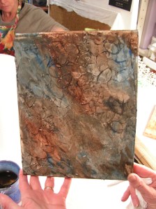 Here are some of Carole’s pieces. None of us finished but we just kept adding layers and textures with a variety of tools.
