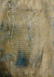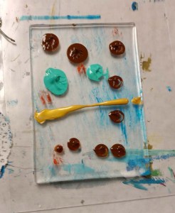 You can see here the paint applied to the plate, using the brayer to roll it out and before printing. Sadly, I didn’t get what the print looked like.