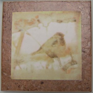 The Lazertran sheets for other fabric has you peel the paper backing off first and then ironing it to the fabric. The left hand photo shows a photo of Paula’s mother and the right hand photo is a decal on a tile of Sally’s original artwork. I only ended up making one piece and I have a couple more that I will probably do here at home. The hand of the fabric is really changed by the decals and they are quite shiny and have the look of plastic. I couldn’t decide what I would do with any of these as they aren’t really my style. But perhaps I can figure out what to put my decal on eventually. Have you used Lazertran before? Did you like it?