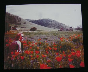 The other process that you can use with Lazertran is to apply it to fabric. There is a specific Lazertran sheet for silk, for white fabric, for black fabric and for decals. The instructions are all different with each kind. So it gets a little confusing. Once the Lazertran sheet is printed, the white borders are cut off. For the silk variety, you iron the Lazertran to the fabric and then soak it in water to remove the paper backing. Here’s Louise showing off her creation. This is a photo of one of her original pieces of artwork.