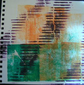 And I did print the water lily stencil on felt. The background felt is a deconstructed screen printed piece. I stenciled with my new Smudgee and screen printing ink which worked great. You just put it over your fingers and dip it into the ink, then stencil with it. I will probably add a little stitching to this and then frame it. So lots of new toys to play with and I’ll be making print paste soon so more printed felt coming up soon.