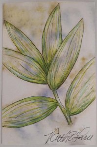 Here are a few of the eco prints on paper that I did at the retreat last weekend. I added some embellishment with black pen and Tombow colored pens.