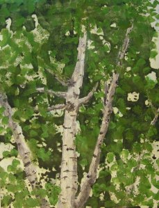 And this last one is of the upper branches of the aspen tree. It was supposed to be looking up into the branches but the viewpoint isn’t exactly as planned. I think I got the angles of the branches wrong. But I still like it. Next up I am beginning on rock studies.