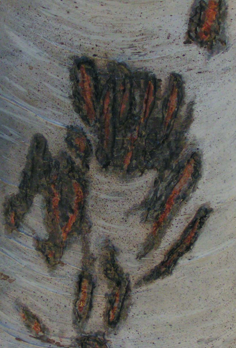 This is a painted representation of the bark of the aspen tree up close. Lots of layers here.