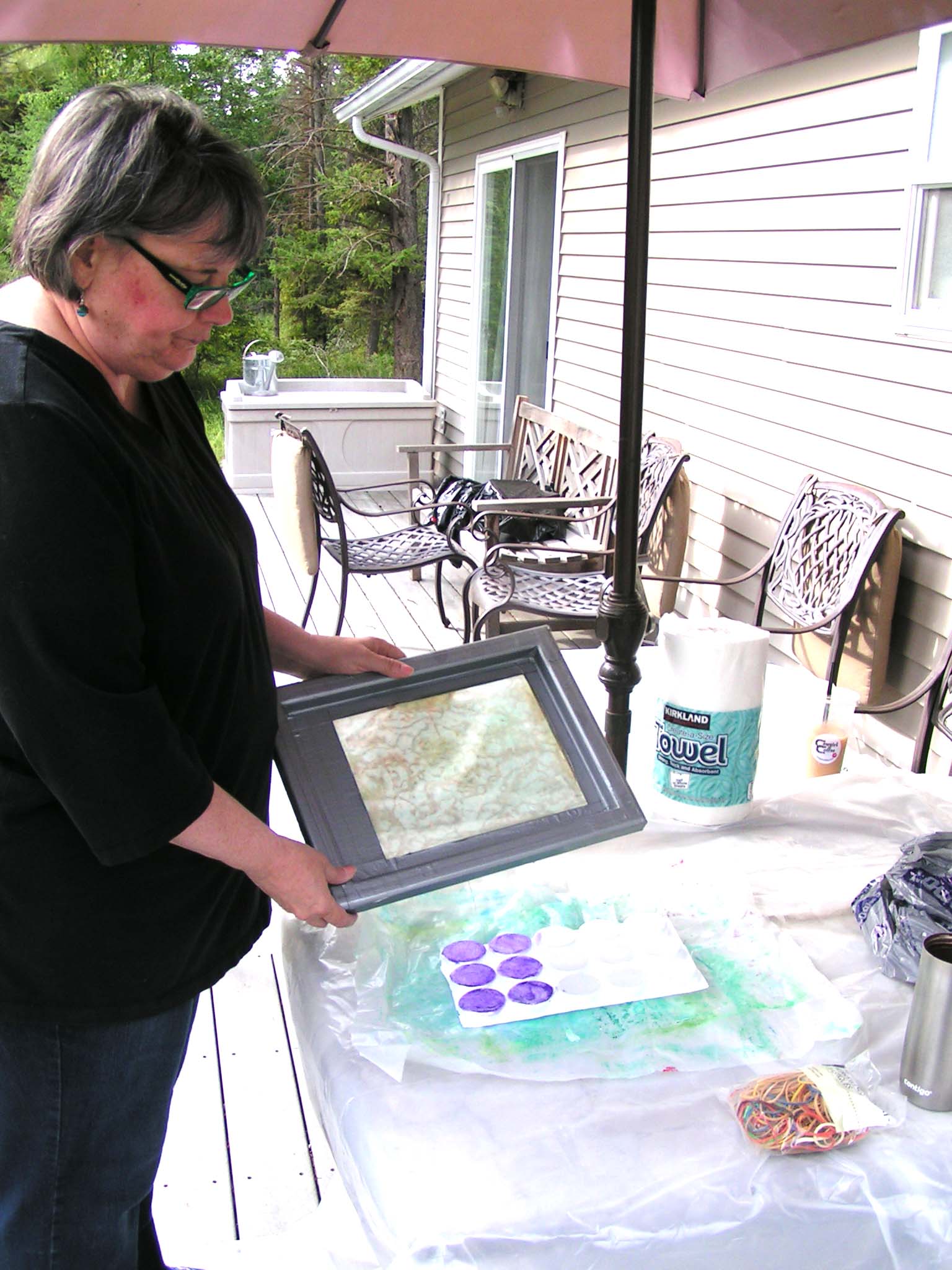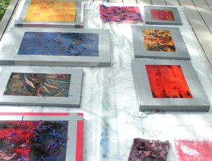 We had seven screens to cover with dye and a bunch of different things to create texture in the screens. We worked outside since the process is kind of messy.