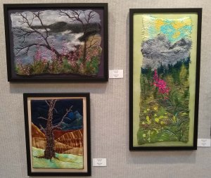 Here’s my work. These are wool paintings with hand and machine stitching.