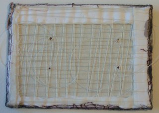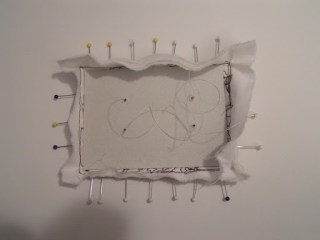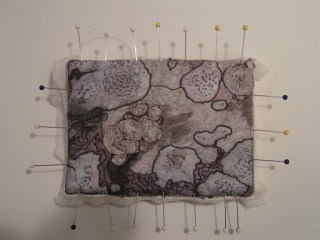 Then I created a pattern for the applique pieces out of tracing paper, chose some hand dyed organza and a linen background.