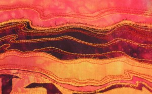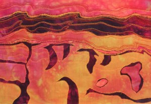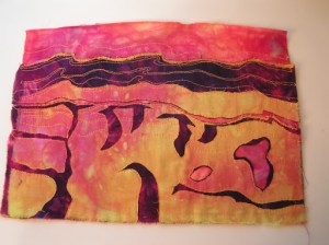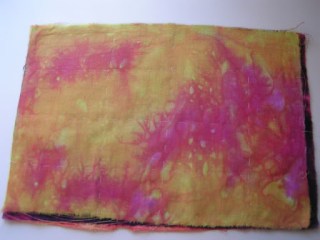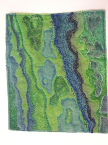 So the stitches I would do again are heavy chain, cable, basque knot and petal stitch. I used #5 hand dyed perle cotton to stitch on painted polyester felt. I just used what I had on hand with me although I should have used a different color to show up better. If you’re thinking about getting the Mary Thomas book, I would recommend it if you know the basics about hand stitching. It is a bit hard to follow the instructions and the pictures/diagrams are not always easy to understand. It would be frustrating for a beginner.