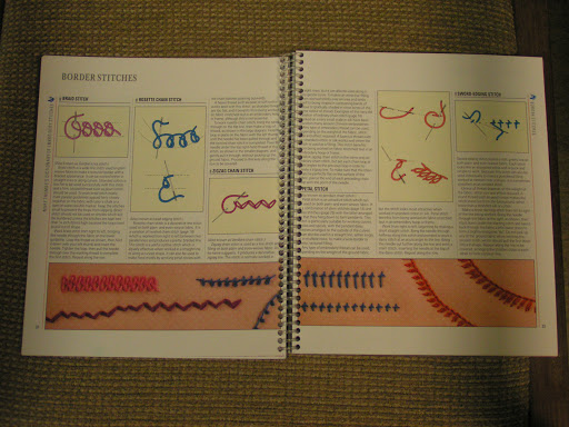 At my last stitch class, my friend Patti generously gave me a new stitch dictionary. She gave one to each of us in the class and had them bound with spiral binding so the book lies flat when you use it. This is perfect for learning a stitch as I have to keep referring back to the book when I’m trying out a new stitch.