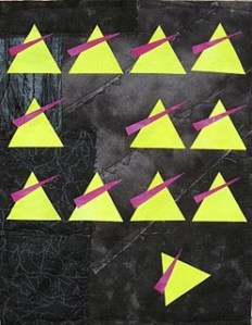 Practice making small compositions with a variety of geometrical shapes. How do the elements look scattered randomly across the surface? What happens when you move the items into groups that are close together or overlapping? What does your design look like with similar shapes repeating in a pattern? How can you move the viewer’s eye from one shape to the next? If you use a grid as your format, how does this affect the design?