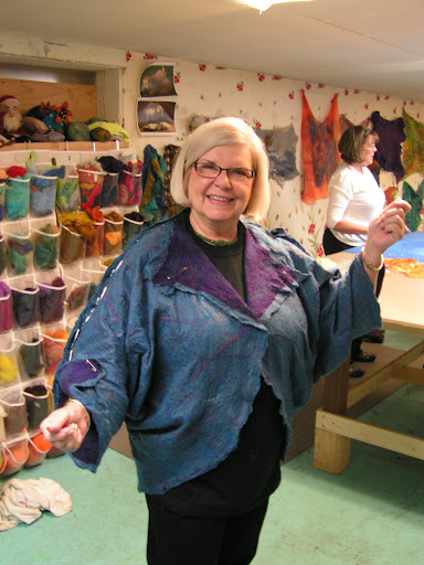 This is the silk side. I always love the texture and ruching that you get from nuno felting on the silk side. That’s the basics of how to nuno felt. If you have any questions, please feel free to ask. I have a much more thorough explanation in my book The Complete Photo Guide to Felting if you need more explanation.