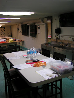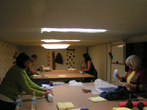 Here’s the class room before we started. We talked about nuno felting, design, color and different methods of construction for a jacket.