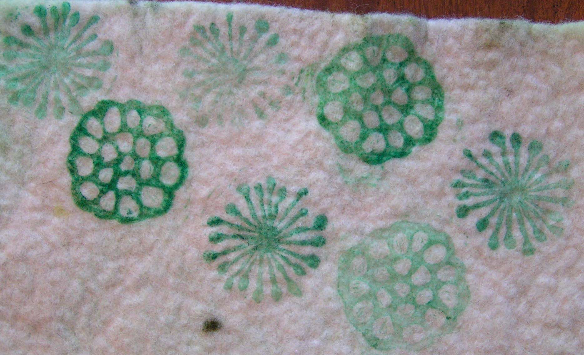 Here are a few samples that I made. The pink one has a layer of viscose fiber in the middle. I think that I added too much wool because I thought it would be a bit more light weight than it is. The second one is a weaving of two silk fabrics that I then nuno felted. The red and green fabric is from the pillows I recently made. It is silk charmeuse and very heavy. I didn’t think it would felt but Zed suggested I try weaving it in with a lighter weight silk that would hold the heavier fabric down. And it worked. The colors aren’t too exciting together but I was just testing out how the silk would hold down. I also tried sandwiching the heavy silk fabric between layers of wool to see if I could still see an outline of the silk in the middle. That one didn’t work. It just looks like felt. You can feel the silk as the felt kind of slides around on it but otherwise very unremarkable. But we all had fun so that’s the most important part.