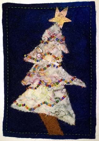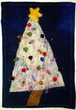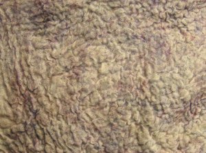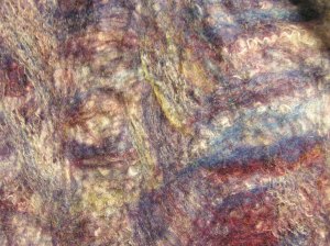 And here is Louise’s project. She used butterfly silk, cotton threads and a mix of poodle hair and merino. It took a bit of extra effort to get the poodle hair to felt but it worked in the end. It did smell a bit like a wet dog though.
