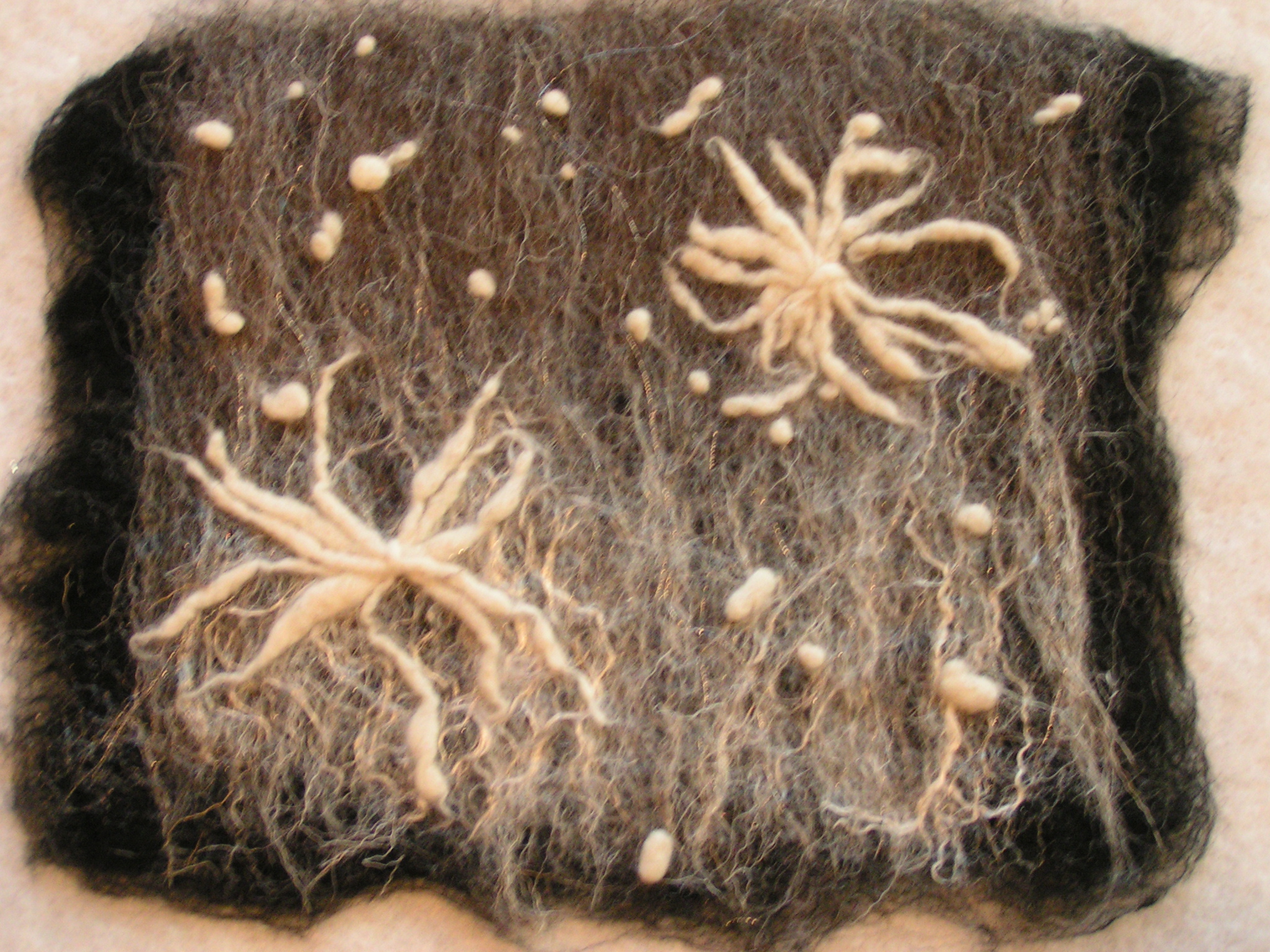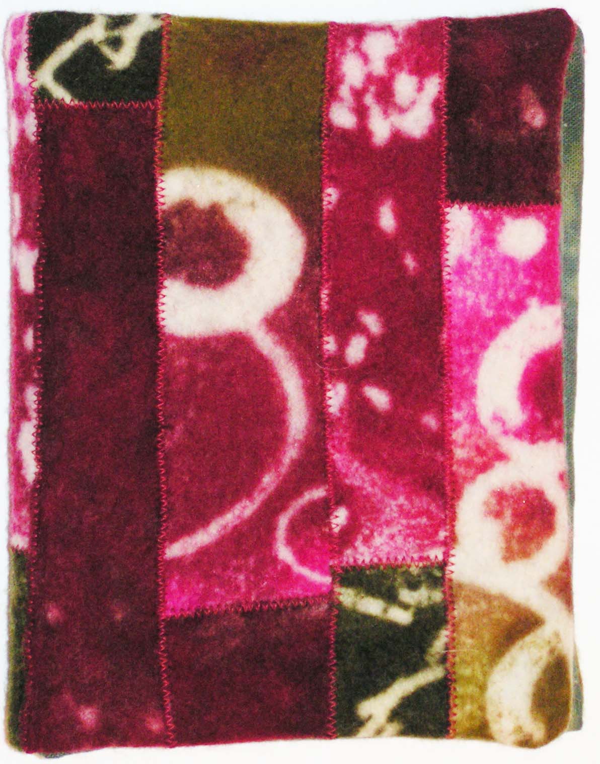 And here’s the back of the notebook cover. If you are interested in learning how to screen print on felt, I have an online course starting January 22nd. It is 4 weeks of instruction with PDF’s and videos and loads of information about screen printing. Even if you don’t want to screen print felt, it also shows you how to screen print silk. So if you’re a nuno felter or use silk in your work, screen printing is a wonderful surface design technique to make patterns of your own design to use in your work. For more information about the class, go on over to The Felting and Fiber Studio Class page.