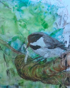 I am basing the linocut off of this collage that I did of a Caroline Chickadee. I got the inspiration photo from my brother-in-law Lewis.