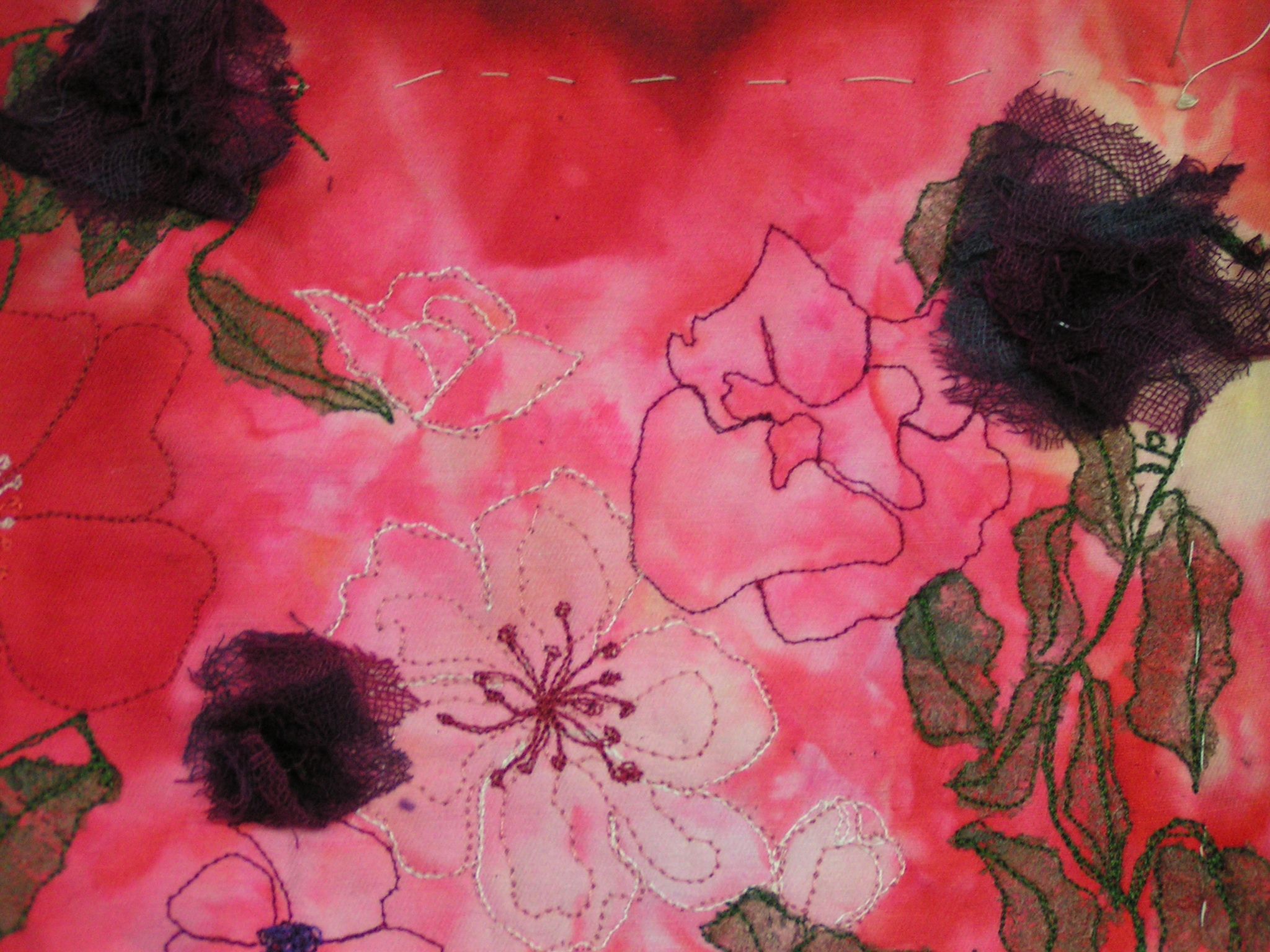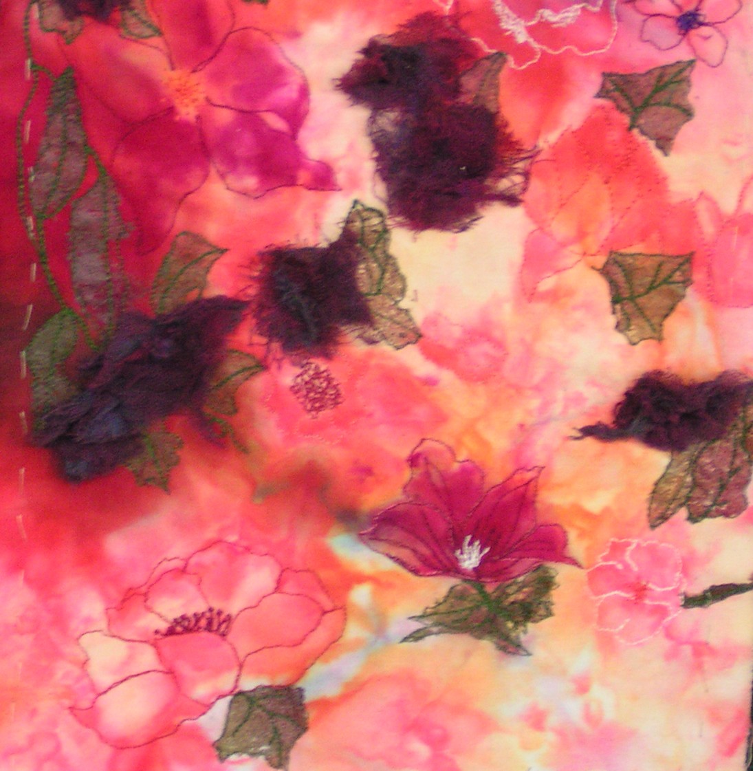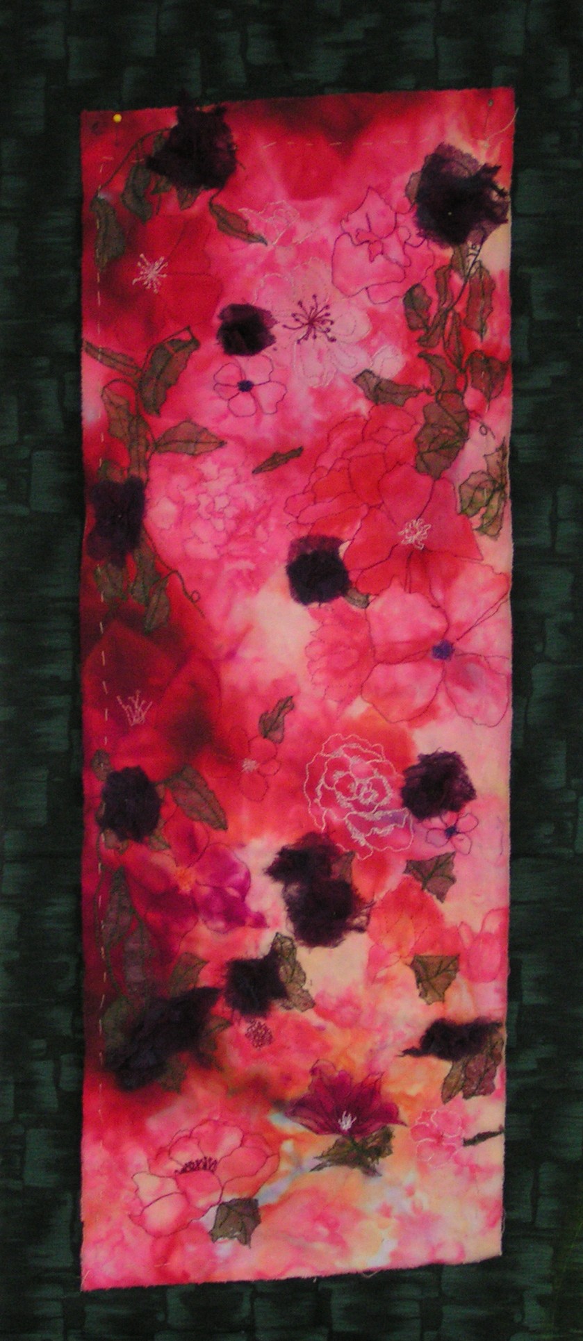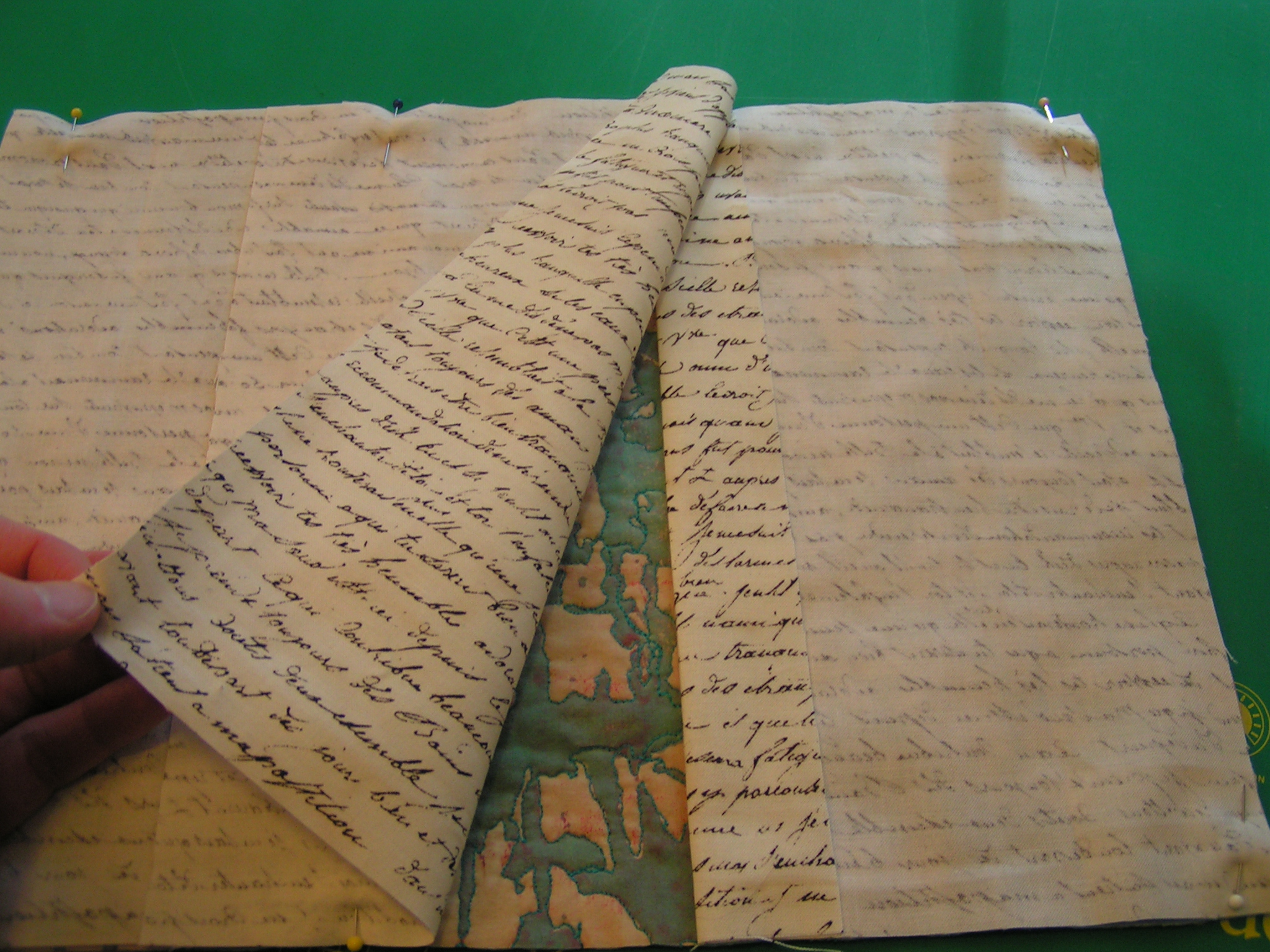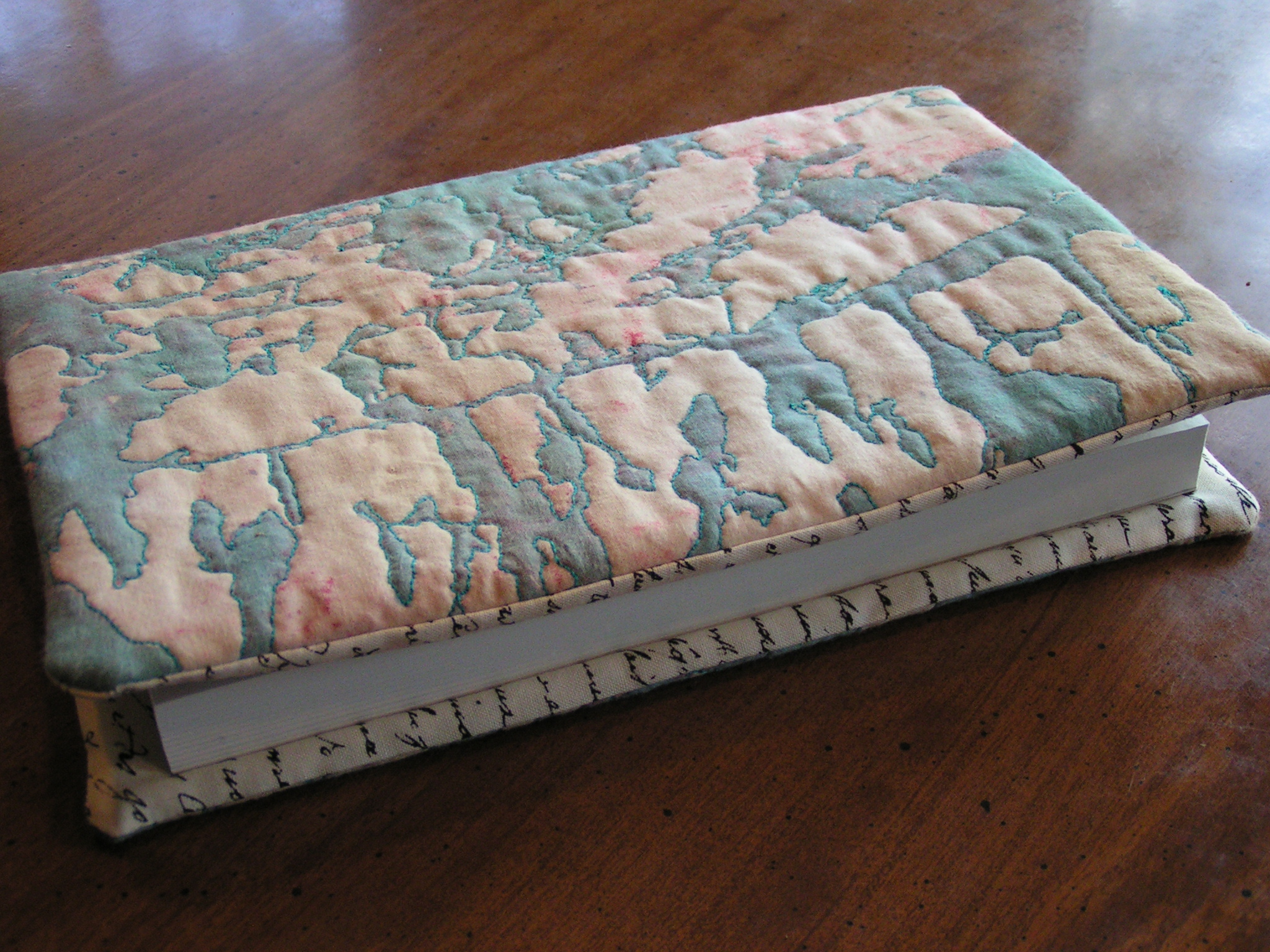 If you read my post this morning over on the Felting and Fiber Studio, you’ll recognize this book cover. This is one of my screen printed fabrics. I finished the free motion quilting.
