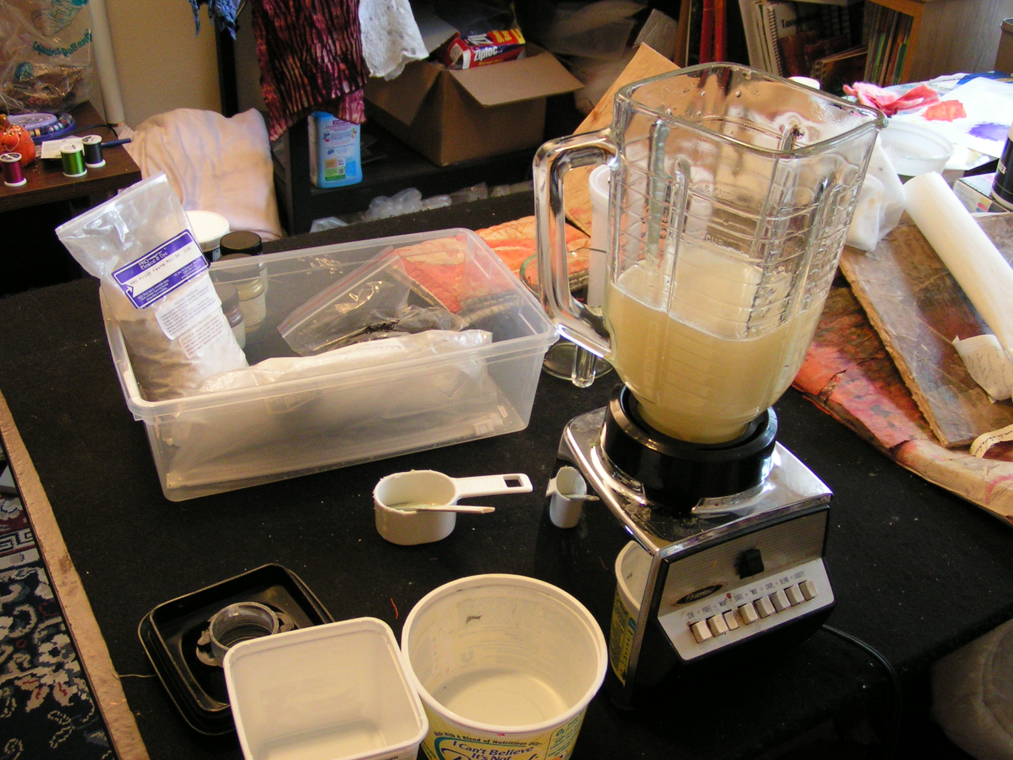 So I mixed up some print paste. You can buy it ready to go without having to mix any extra chemicals. You just add water and whir it up in the blender. I use this blender just in the studio.