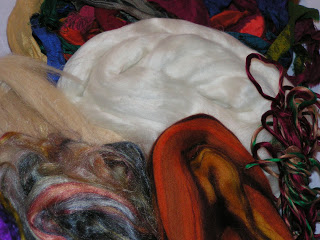 Ann also sent this gorgeous silk that I’m sure she dyed. It’s purple and gold and I love it. I want to rush home and nuno felt a scarf with it. But I’m not sure that is going to happen any time soon. Thanks Ann!