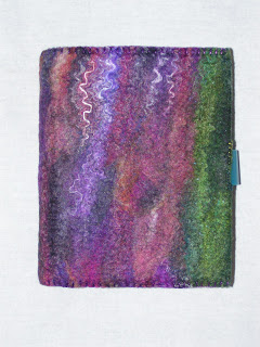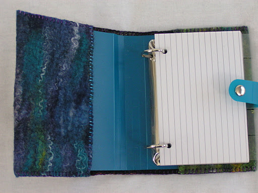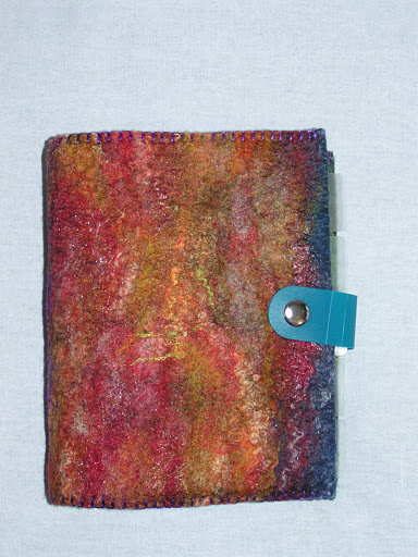 I received this lovely felted index card holder from Zed before Christmas. Isn’t it gorgeous? She used a variety of fibers and parts of it have a wonderful sheen.
