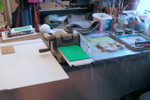 I photocopied my rocks and then worked out how I wanted the water to flow over the rocks. So far so good. But I needed some underwater rocks. These needed to look more hazy and not as defined as the surface rocks.