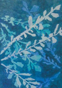 Here’s the full book from the top. The binding was made with Japanese rice paper that had been coated with paint and matte medium. I tried to use fabric but I couldn’t get it to fold correctly and I thought the paper worked much better. I still have some of the fabric folded accordion style and may try it with another book. This is a pretty simple book binding and works well if you can fold straight 🙂