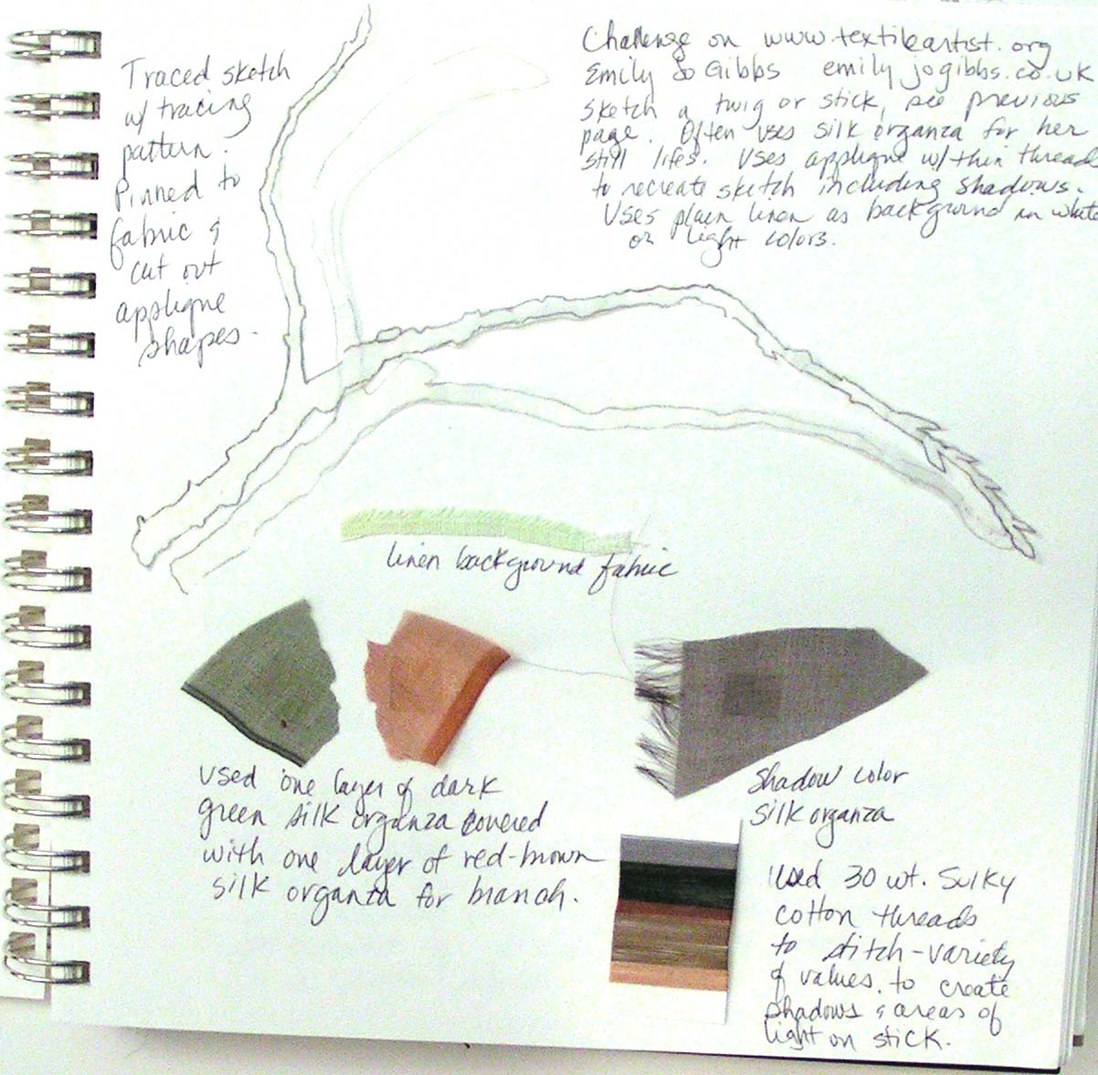 Here’s another stitch sample that I created for my Level 3 Stitch class. It is done with Kloster stitch which is a variation of couching. I decided to use a mushroom that I took a photo of near my house as it related to my theme of trees communicating for my larger wall hanging.