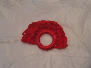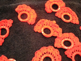 I know, it’s supposed to be seeing red. But today I’m seeing orange. I needed orange decorations for a purse I am refashioning and I had found some little crocheted pieces at the thrift store. They were white and actually had some sort of glue in them when I bought them. I just soaked them in water and that took care of the stiffening agent. Today, I dyed them orange and since I had some extra dye, I put in a little fabric as well.