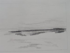 Here’s a simple landscape that I drew. I think the backgrounds will look similar to this except done in fiber. Now I have to work out how to represent my “women” of the past. I have a fair idea of how to do my contemporary fiber artists.
