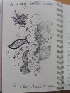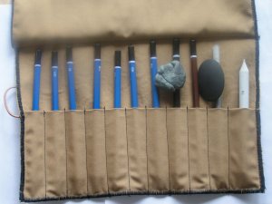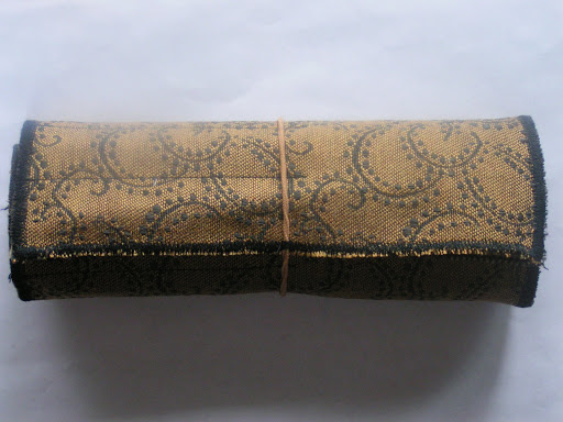 Here’s a pencil case that I made to carry with my workbook. I use an elastic hair band to use as a closure.
