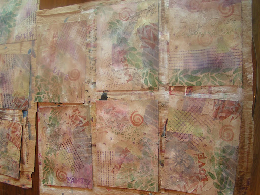 Here’s another one. I made 20 in all. They are 9″x12″ but will be folded in half. Now I need to cover the other side since these are dry. Then I’m going to add paint, more images, ink, and whatever else I decide to throw on the page. I think this project is going to take me a while.
