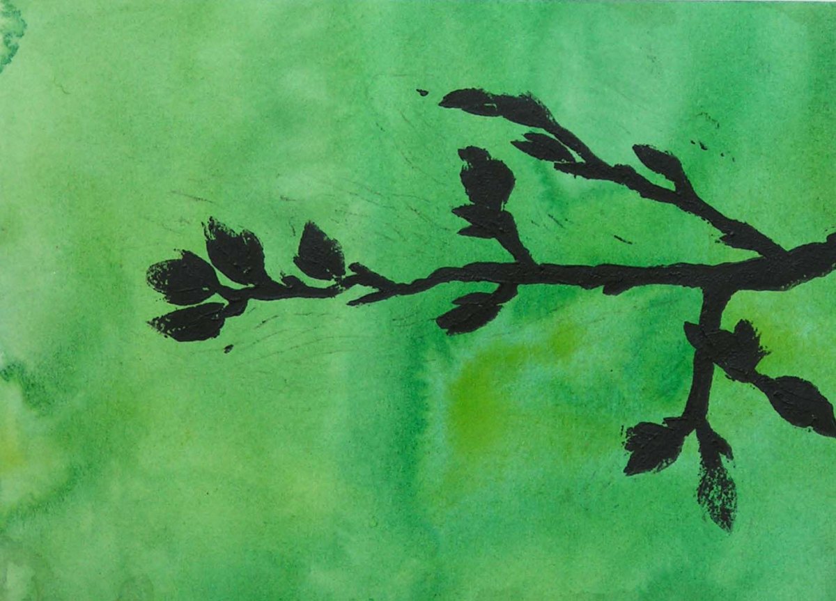 Buds Linocut on Green