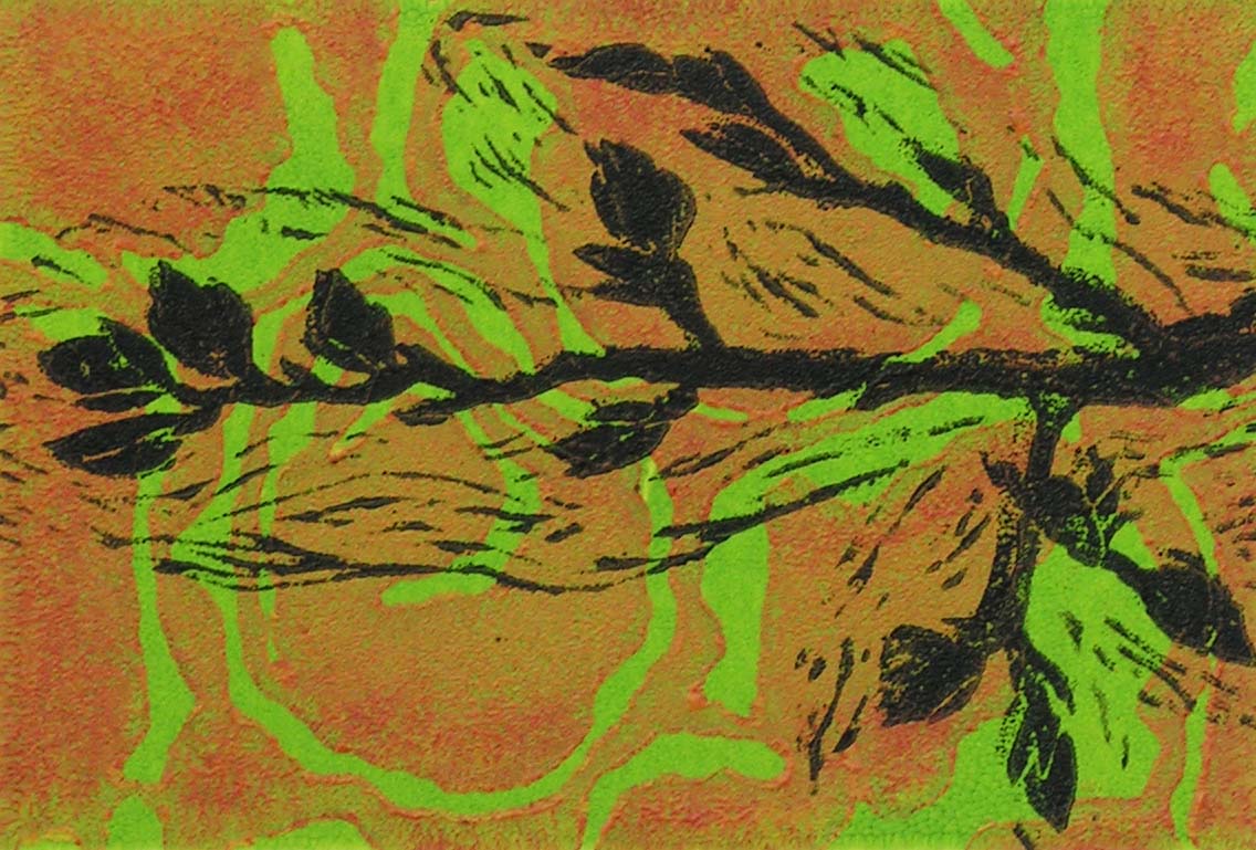 Buds Linocut on Tree Rings