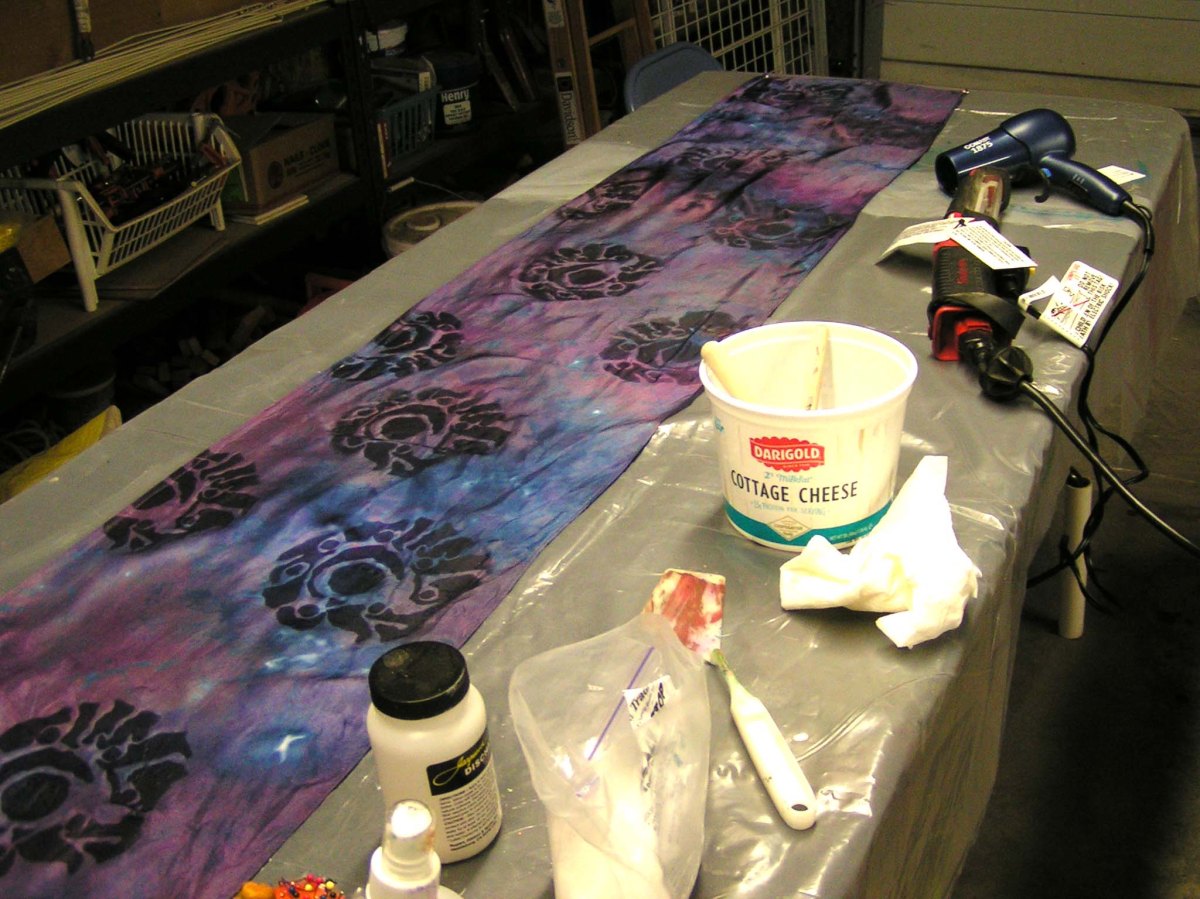 Discharge Paste through screen on silk scarf Published October 18, 2019 at 2048 × 1536 photo by Ruth Lane