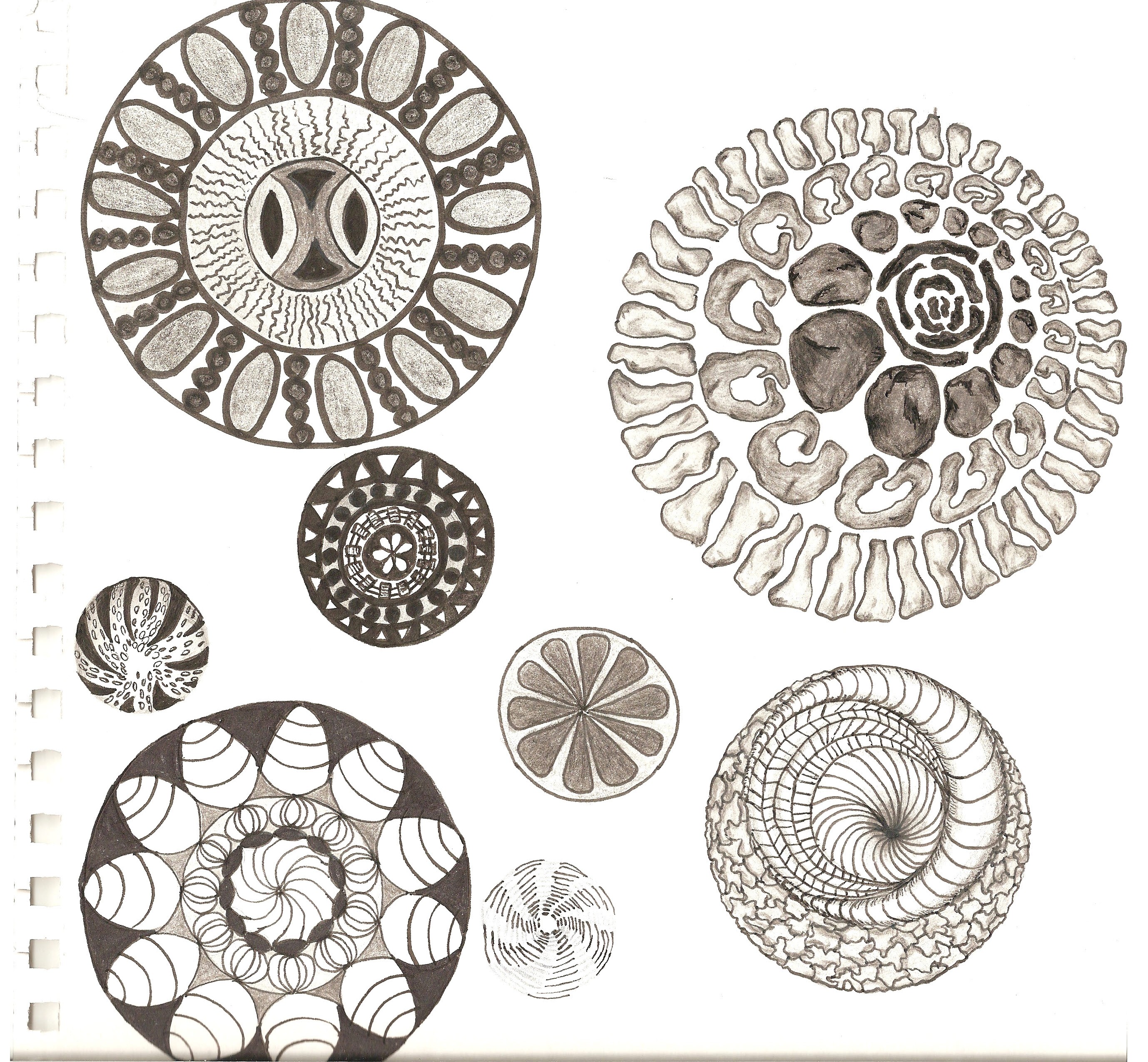 These circles are done with white, black and grey. All of the designs don’t really seem to go together but I like the individual designs.