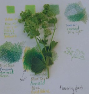 Part of my homework for Level 3 Art and Design is to work on color finding. Mainly, I am supposed to do this with colored pencil but I’m using other media as well. I take something from nature and then try to replicate the exact color with layers of colored pencil. I find this exercise quite a challenge.