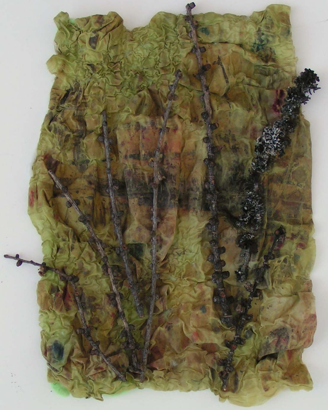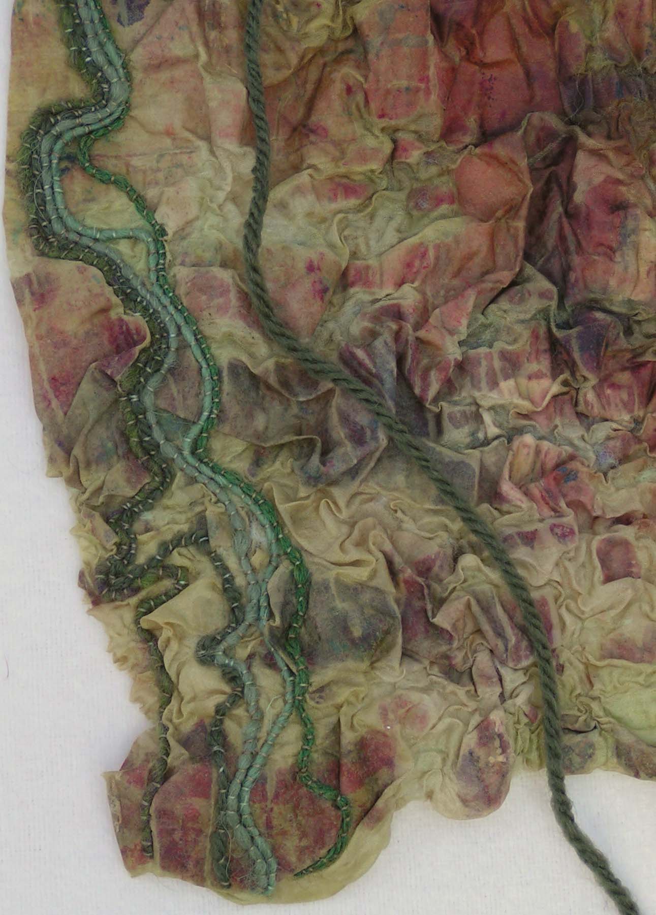 Here it is with cropping. Somehow I ended up with the center of the spirals too close to the center of the piece. The camera has a hard time capturing the sheer fabric and the shift in colors.